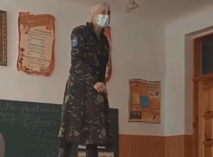 На відео видно вчительку, яка емоційно та цікаво викладала матеріал учням. Для цього педагог забралася на парту.