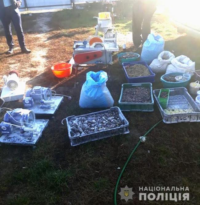 Під час обшуку правоохоронці виявили і вилучили близько 100 кілограмів бурштину різних фракцій, вісім станків для його обробки, дві мотопомпи заводського виробництва та чорнові записи, про це повідомляє відділ комунікації ГУ Національної поліції у Рівненській області.