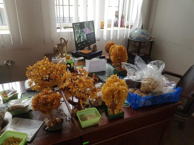 Звідти вилучили 17 кілограм обробленого бурштину, 3 кілограми самоцвіту в готових виробах, а також засоби та приладдя для обробки «сонячного каменю».