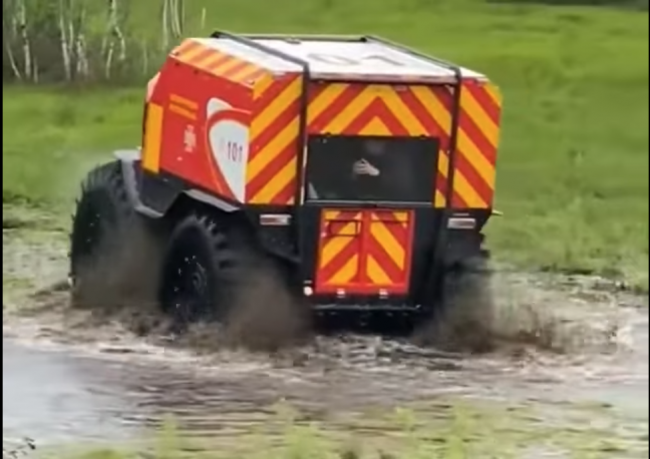 Машина може самостійно виходити на лід, має високий запас плавучості та вантажопідйомність до 1000 кілограмів. У диски коліс вбудовані 58-літрові каністри для палива, завдяки яким загальний запас збільшується до 232 літрів.