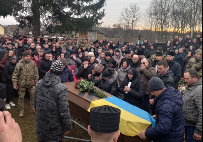 «В останню дорогу Сергія КОРУСЯ проводили велелюдно, з військовим оркестром і почесною вартою… Віддати останню шану Герою прийшли не тільки мешканці села Головин, а й жителі Злазного, де Сергій народився, та інших сіл нашої громади», — повідомляють у сільській раді.