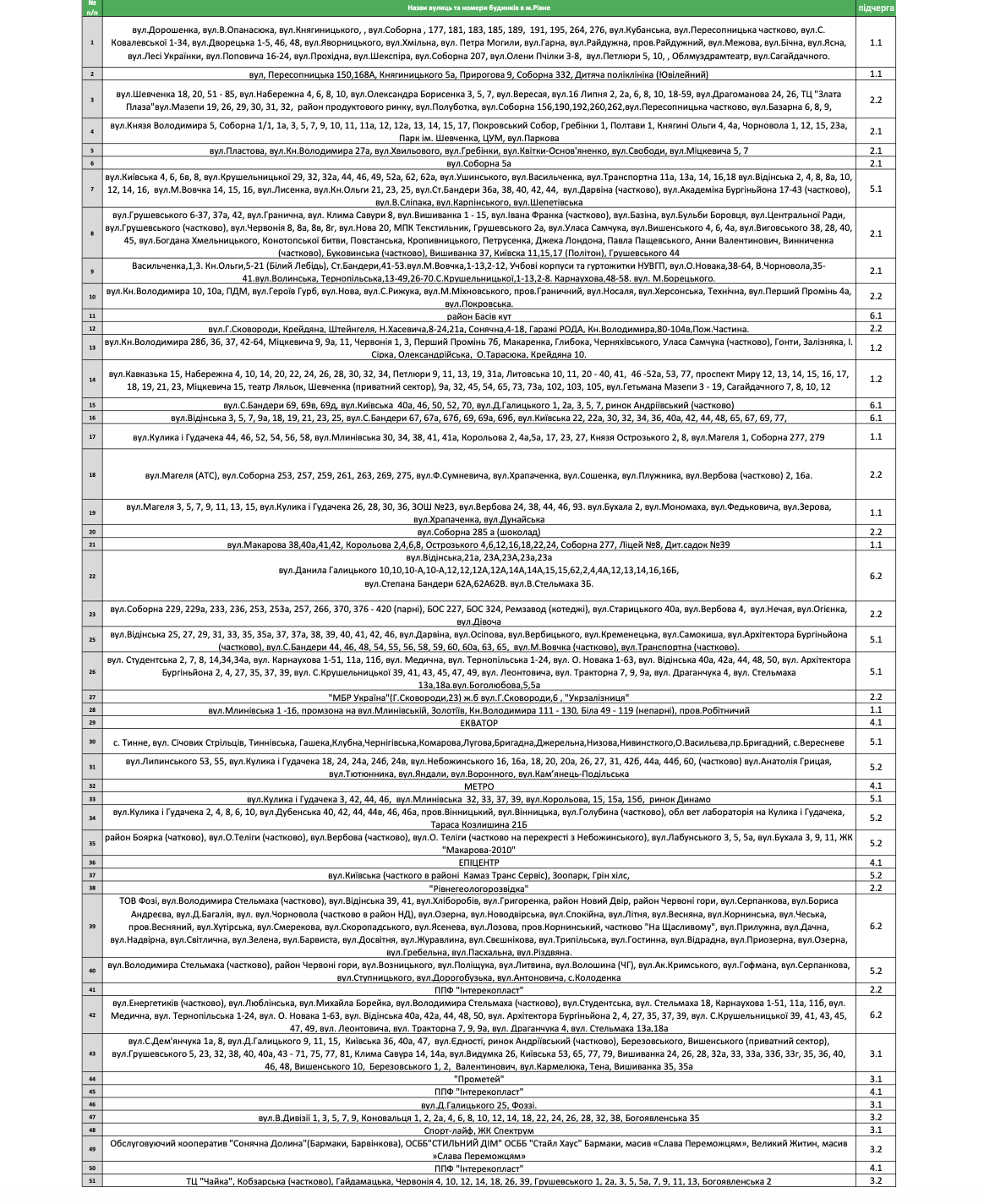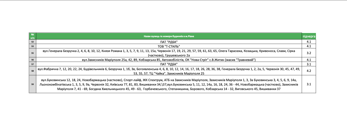 Знеструмлення відбудуться за таким графіком: