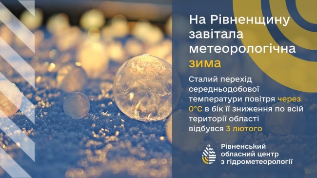 – На Рівненщину нарешті прийшла метеорологічна зима! Сталий перехід середньої добової температури повітря через 0 градусів в бік її зниження відбувся 3 лютого! – повідомили в обласному центрі з гідрометеорології.