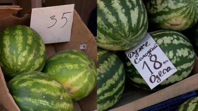 Якщо у червні кілограм кавуна коштував 30-55 гривень за кілограм, то зараз 15-18 гривень, уточнює Суспільне.