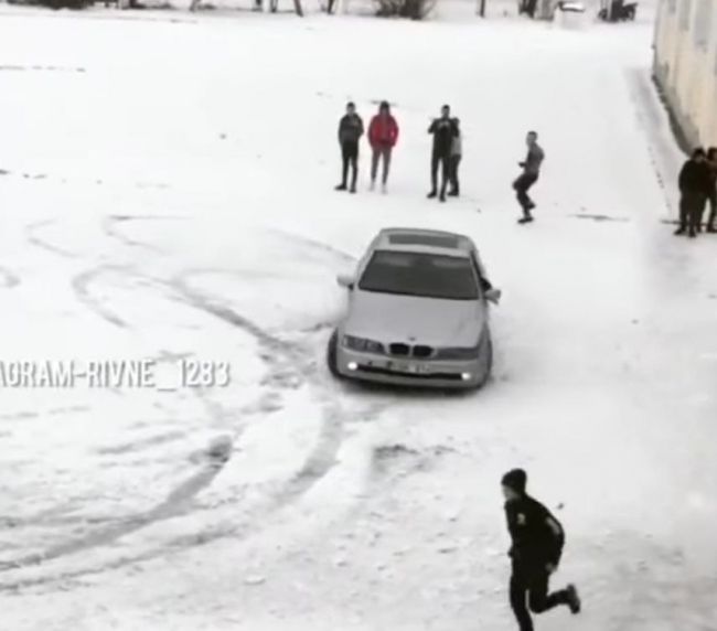 На відео видно, як автомобіль «BMW» дрифтує на шкільному подвір’ї, оббризкуючи школярів снігом. Учні, які вибігли на вулицю та спостерігали за цим, почали кидати в авто сніжки.