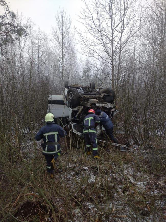 Рятувальники переконались, що авто не загориться і за допомогою страхувальних тросів витягли його з кювету.