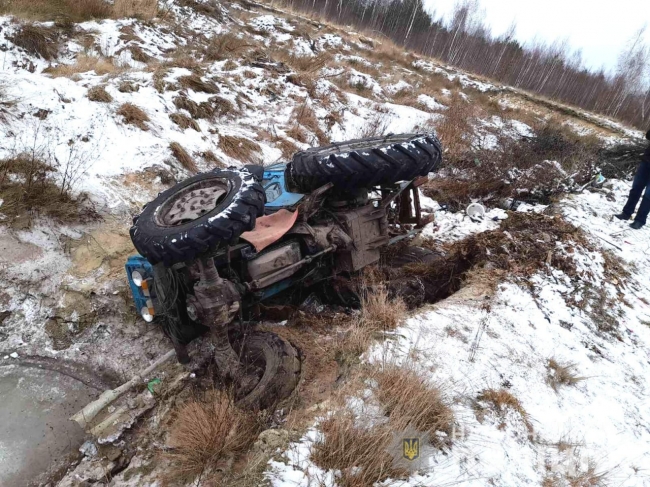 Поїхав він додому через ліс, однак не впорався із керуванням, вскочив у яму та перекинувся. Кермувальник не травмувався та пішов далі пішки, а техніку там і лишив. Трактор повернули власнику.