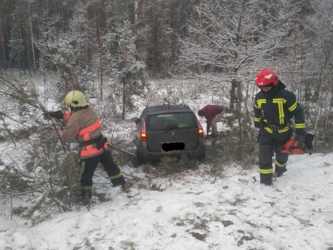 Рятувальники встановили, що загрози життю водія немає. За допомогою важкої інженерної техніки бійці ДСНС відбуксирували автомобіль з кювету на узбіччя дороги.