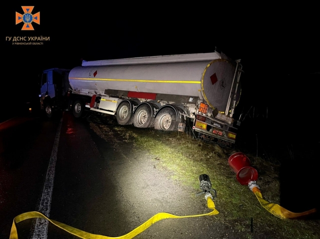 На спецлінію «101» надійшло повідомлення, що поблизу села Костянтинівка Сарненського району у кювет з’їхав бензовоз Reno C440 із подальшим витоком дизельного палива.