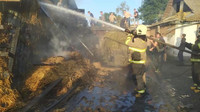 Рятувальники встановили, що вогнем повністю охоплено покрівлю господарської будівлі. Існувала загроза поширення вогню на поряд розташований житловий будинок та ще одну господарчу будівлю. З різних сторін вони подали водяні стволи.