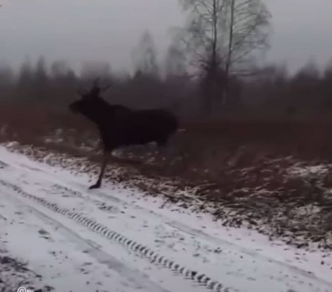 Самець біг попереду, а вслід за ним йшла самиця. Тварини, побачивши людей, змнили маршрут.