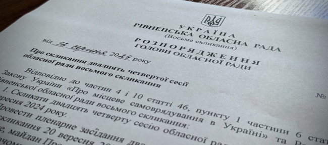 Підписав розпорядження про скликання чергової – 24-ї сесії Рівненської обласної ради 8-го скликання голова обласної ради Андрій Карауш.