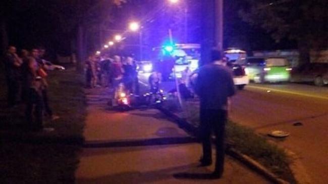 Сьогодні близько 23:00 на вулиці Соборній, неподалік Будинку офіцерів у Рівному, трапилася ДТП. Зіткнулися мотоцикл та автомобіль.