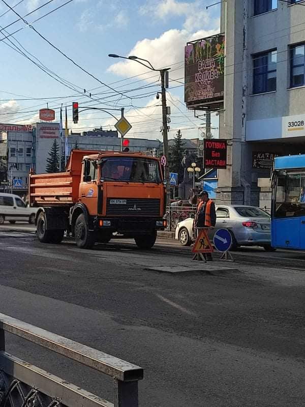 — Працівники міськШЕУ продовжують ремонтно-будівельні роботи від перехрестя Соборна-Міцкевича-Чорновола. Ми запланували його ще навесні. Тоді ще не знали, що будуватимуть кільце на в’їзді до Рівного. Саме тому наші працівники працюють від п’ятої ранку і до вечора, аби швидше замінити асфальтне покриття. Також запланована заміна бордюрів. Якби не кільце, ми б перекрили частину центру і звершили би ремонт за тиждень. А так доводиться перекривати лише частину дороги і рухатися з ремонтом повільнішими темпами. Вартість ремонтних робіт — 2 мільйони 750 тисяч. Відповідно до договору маємо завершити його до 1 жовтня.