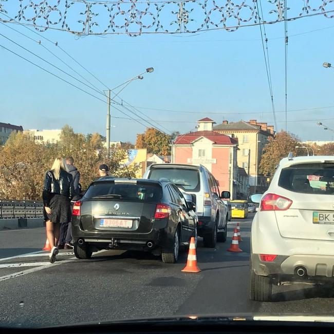 У Рівному на мості, що на вулиці Соборній, трапилася ДТП. Зіктнулися дві автівки.