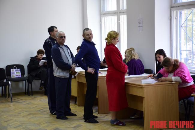 З 64 хворих, які можуть прийти на дільницю самі, близько 20 це зробили уже у першу годину голосування. До столу членів ДВК, які видають бюлетені, час від часу навіть є черги з кількох хворих.