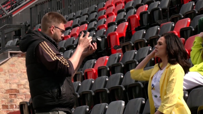 Сьогодні з командою однодумців дівчина прийшла на стадіон Авангард, щоб відзняти на пісню кліп, повідомляє Суспільне.