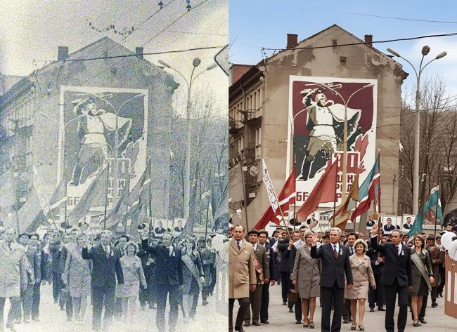 На стіні будинку біля ЦУМу колись висів радянський «мурал»