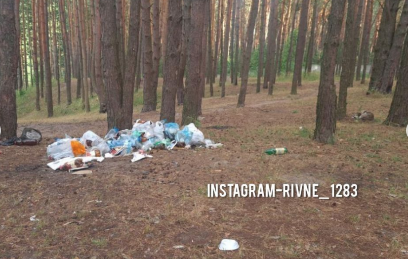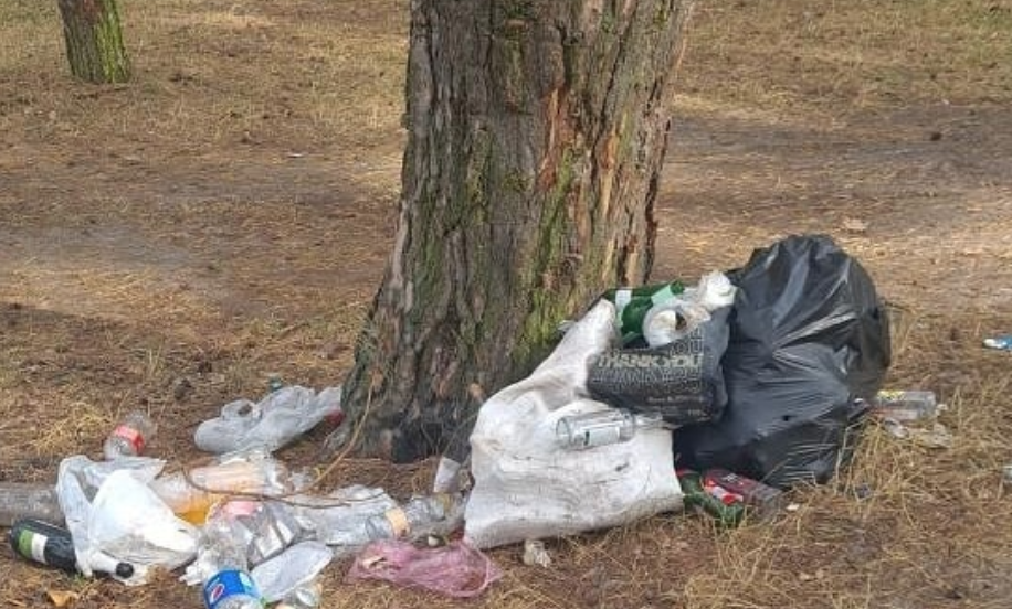 Під деревами валяються пусті пляшки, поліетиленові пакети, маски тощо.