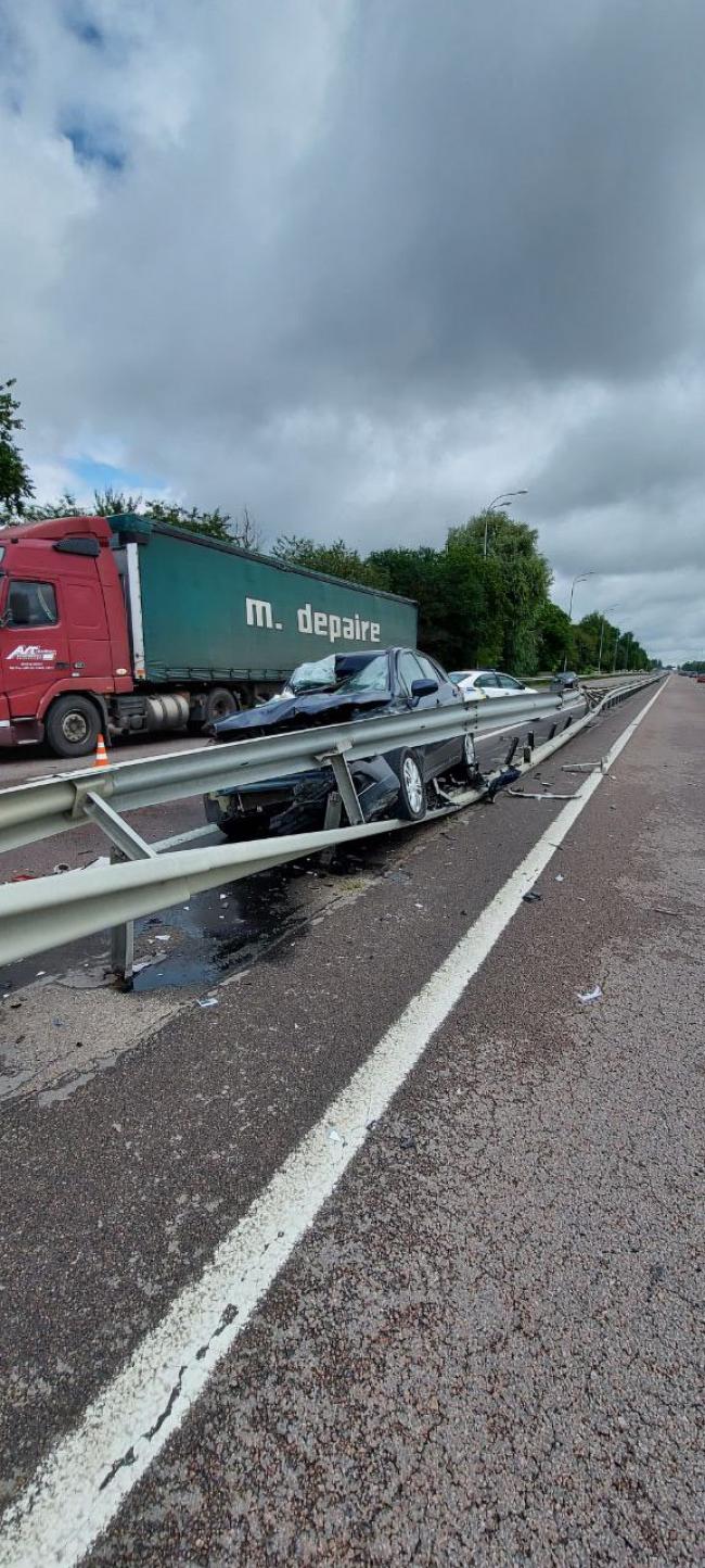 – Прибувши на вказане місце інспектори виявили ДТП без травмованих за участі двох транспортних засобів. Керуючи автомобілем Сузукі, водій не вибрав безпечної швидкості руху, не дотримався безпечної дистанції та скоїв зіткнення з автомобілем МАН, після цього по інерції руху автомобіль здійснив наїзд на металеве огородження – відбійник. Обидва транспортні засоби отримали механічні пошкодження.. Пошкоджено також 26 метрів відбійника. Ніхто з учасників не постраждав, медичної допомоги не потребують. Патрульні забезпечували безпеку дорожнього руху та на керманича Сузукі склали протокол за статтею 124 КУпАП, тобто за скоєння ДТП.
