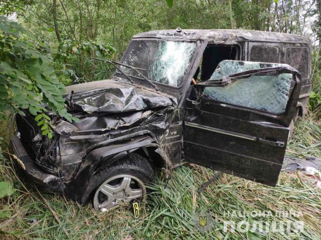 Слідчо-оперативна група на місці події попередньо встановила, що 50-річний водій автомобіля «Mercedes-Benz G 500», житель Івано-Франківська, на заокругленій ділянці дороги не вибрав безпечної швидкості руху, не впорався із керуванням і допустив наїзд на відбійник із подальшим перекиданням позашляховика у кювет.