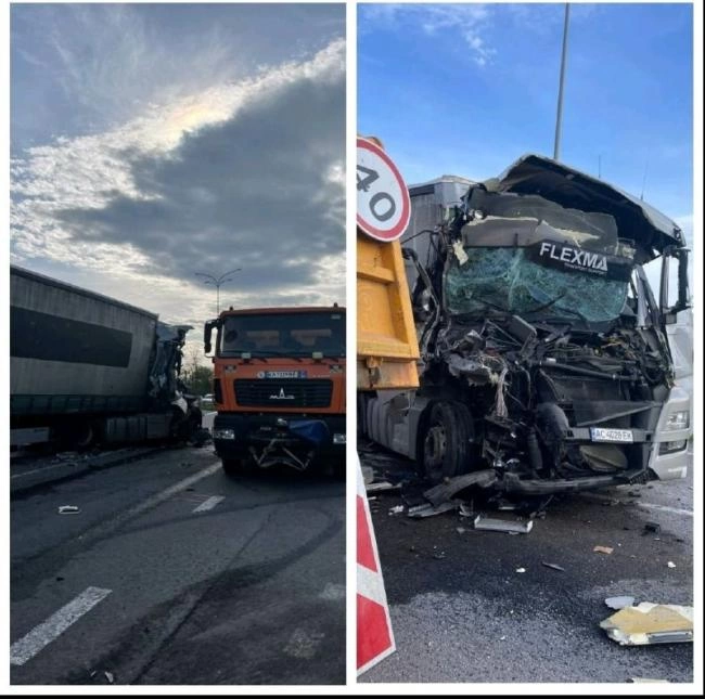 Про зіткнення двох вантажівок повідомили у телеграм- спільноті “Рівне-1283”. ДТП спричинила незначні затори на трасі Київ-Чоп. Одному з водіїв знадобилась медична допомога.