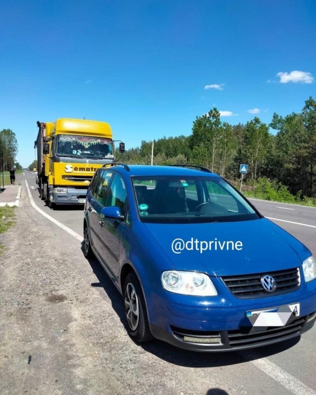 У фейсбук-спільноті “ДТП Рівне та Рівненська область“ повідомляють, що водій вантажного автомобіля “Renault” з напівпричіпом не встиг вчасно відреагувати на зміну дорожньої обстановки, не вибрав безпечної швидкості руху та не дотримавшись безпечної дистанції зіткнувся з автомобілем “Volkswagen Touran”, що знаходився попереду в попутньому напрямку. Про постраждалих не повідомляють. Добре, що вантажівка була порожня, була б повна – легковика можливо і не стало б.