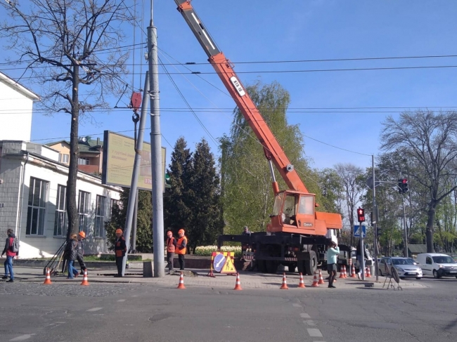 Там міняють опори контактної мережі, тож рух для пішоходів ускладнений.