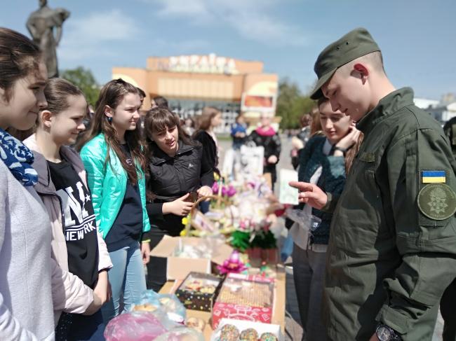 Великодній ярмарок – традиційна щорічна благодійна акція, яку проводять перед Великоднем в центрі Рівного, на майдані Незалежності. Цього року на неї завітали і нацгвардійці. Купували святкове імбирне печиво, пасочки, кекси, обереги та різноманітні сувеніри.