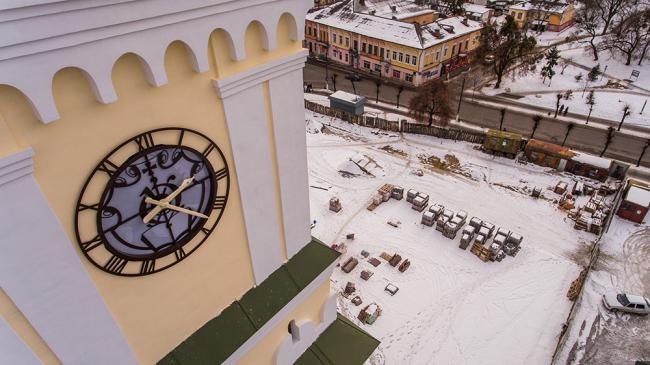 – Буде правильніше, якщо цю вежу ми називатимемо — міська ратуша, яка, до речі, була в центрі міста за часів князів Острозьких приблизно на тому ж місці. Зазвичай ратуша увінчувалася годинником. Ми вирішили, щоб циферблати годинників на теперішній ратуші були символічними. Вони поєднують герб Острозької академії і герб її засновника — князя Василя-Костянтина Острозького. Кожних шість годин там звучатиме мелодія студентського гімну “Gaudeamus”. Спорудження ратуші — це своєрідний подарунок для Острога та символ того, що місто повертає собі колишню славу стольного града, яке мало магдебурзьке право, — розповів ректор Острозької академії Ігор Пасічник.