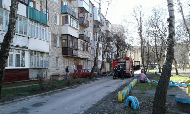 В одній з квартир, розташованих на п’ятому поверсі, спалахнула пожежа. Коли господарі повернулись додому та відчинили двері, потрапили у димову пастку. На кухні горіла пральна машина та інші речі.