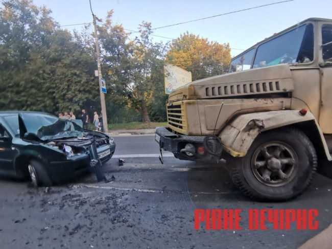 Як розповіли очевидці для «РВ», «КРАЗ» навантажений цеглою зіткнувся з легковиком.