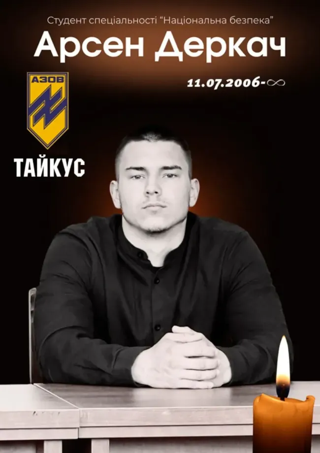 – Із великим сумом повідомляємо: під час виконання бойового завдання загинув студент 2-го курсу Національного університету «Острозька академія» спеціальності «Національна безпека» Арсен Деркач. Уся академічна спільнота НаУОА схиляє голови у скорботі перед Героєм, який віддав життя за волю і свободу нашої Батьківщини! Герої не вмирають, поки живе пам’ять про них! Щиро співчуваємо родині загиблого! Світла памʼять, велика шана і вдячність Герою-захиснику України Арсену Деркачу! – йдеться у повідомленні Національного університету «Острозька академія»