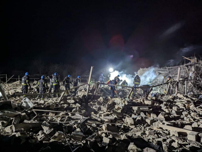 В с. Рівне Мирноградської МВА внаслідок прямого влучання повністю знищено приватний житловий будинок, в якому мешкало 6 осіб, з них 3 дітей, пошукові-рятувальні роботи тривають.