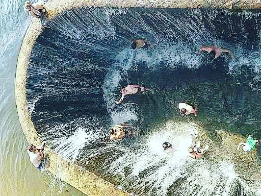 Він розташований на території ставу, де є шлюз зі спеціальним спуском до водоспаду. З нього стікає проточна вода, яка і слугує фоном під час створення світлин.