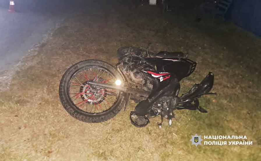 Як повідомили у поліції, приблизно о 21:20 16-річний житель села, який керував незареєстрованим мотоциклом марки «Loncin», допустив наїзд на двох пішоходів.