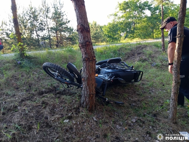 Хлопець на мотоциклі «Shineray» не впорався з керуванням, виїхав за межі проїзної частини, де врізався у дерево.