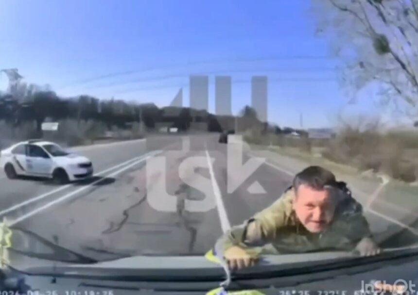Військовослужбовець, який перебував поруч, намагався зупинити транспортний засіб, однак через різке прискорення опинився на капоті. Чоловіка протягнуло дорогою, доки автомобіль не зупинили правоохоронці.