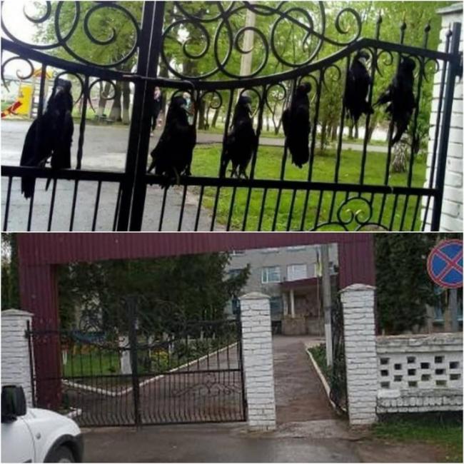 У неділю, 28 квітня, на воротах ЗОШ №7 у Дубні очевидці побачили декількох ворон, які були прив’язані до металевих перегородок.