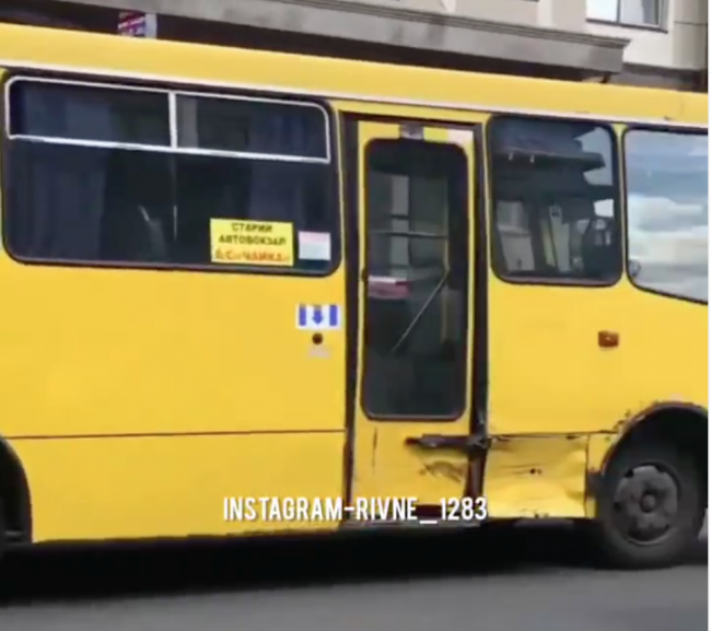 Як видно з відео, яке опублікували в Instagram-групі «rivne_1283», бус протаранив бокові двері маршрутного таксі №57.