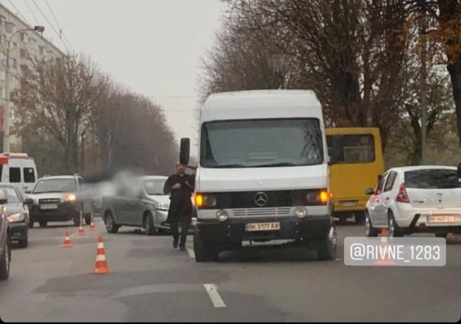 Як повідомляють очевидці у rivne_1283 в Instagram, легковик «Шевроле» зіткнувся з вантажним бусом.