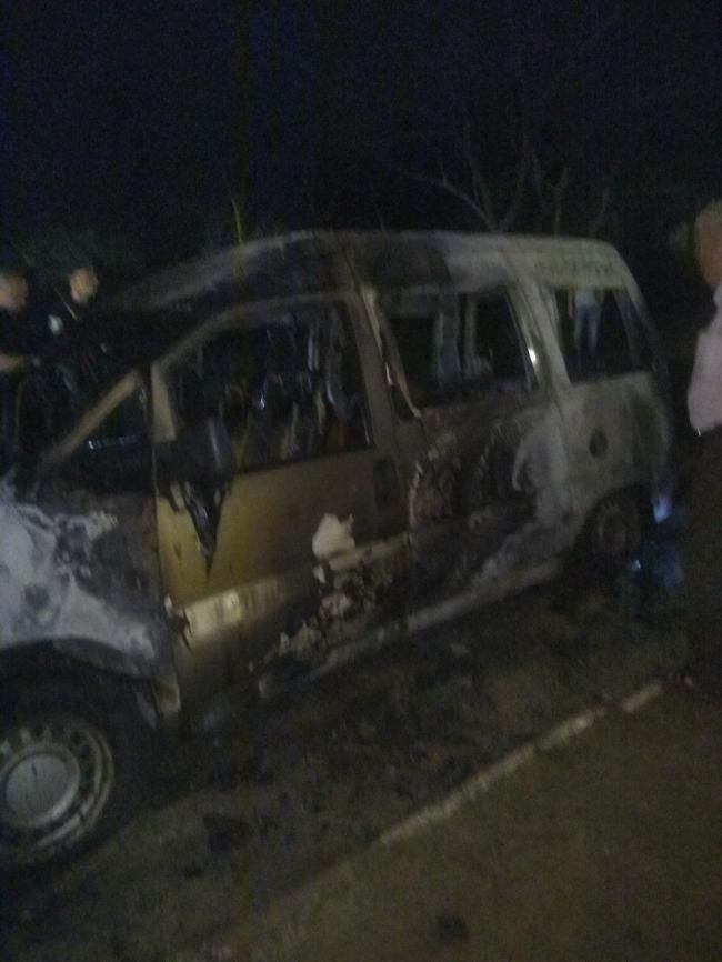 У Рівному у дворі будинку на вулиці Мельника, 6 мешканці спершу ніби почули вибух, а потім побачили, що горить автомобіль Фіат-Скудо. Вогонь перекинувся на Мерседес-Бенц-Віто, що стояв неподалік. Рятувальники пожежу загасили. Її причину зараз з’ясовує поліція. Власницею авто є головний бухгалтер ОСББ «Мельника-6» Олена Олексійовець.