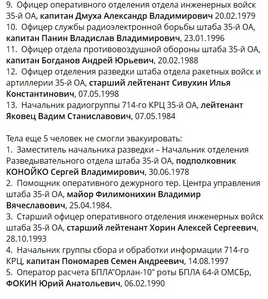 В результаті задимлення та заповнення командного пункту чадним газом окупанти не змогли врятуватися. Загинуло 18 офіцерів.