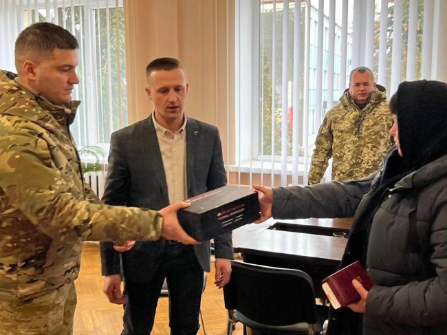 Коли жінка передавала побратимам Євгенія тепловізор, їй вручили орден «За мужність» ІІІ ступеня, присвоєний сину посмертно.
