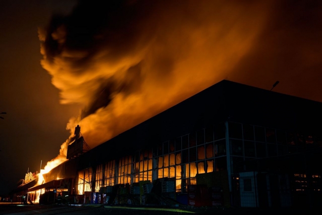 Снаряд потрапив у відділ з піротехнічними виробами, тому горіння супроводжувалось вибухами та феєрверками, крім того ворог почав повторні обстріли.