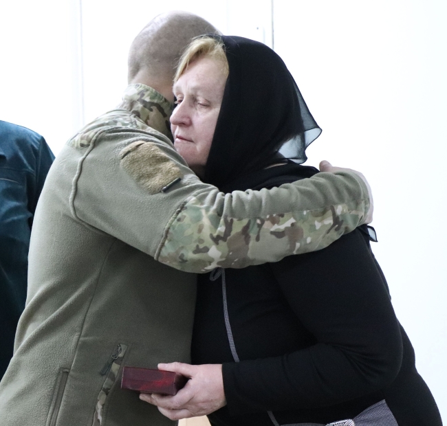 Нагороду матері воїна – Ганні Дворак вручили побратими нашого Героя з військової частини А2077, міський голова м.Вараш Олександр Мензул, начальник Вараської МВА Людмила Мариніна та начальник Вараського РТЦК та СП Андрій Скляров.