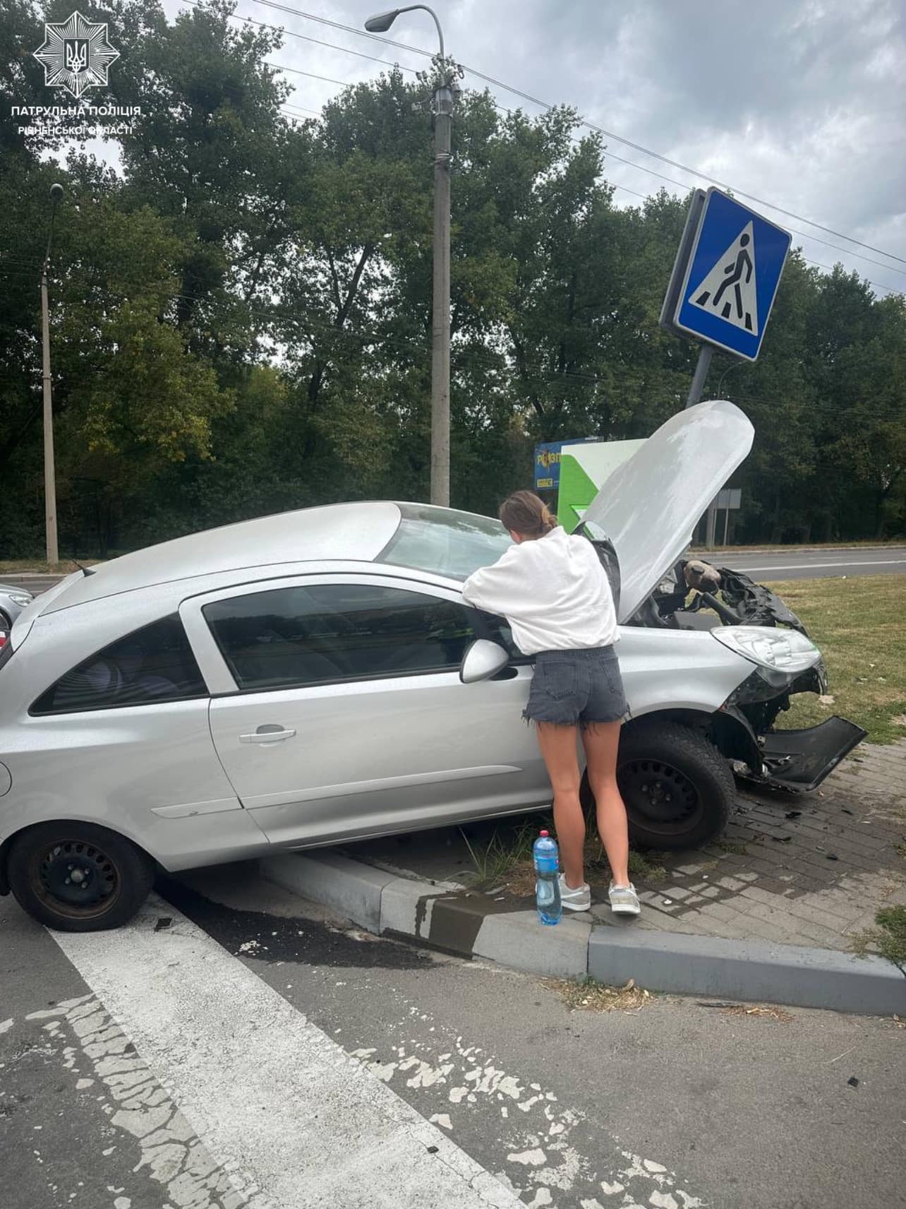 Інспектори з’ясували, що 33-річний річний водій автомобіля Mercedes, повертаючи ліворуч, створив аварійну ситуацію, а 27-річна водійка автомобіля Opel, яка їхала у зустрічному напрямку, щоб уникнути зіткнення — повернула праворуч та наїхала на перешкоду.