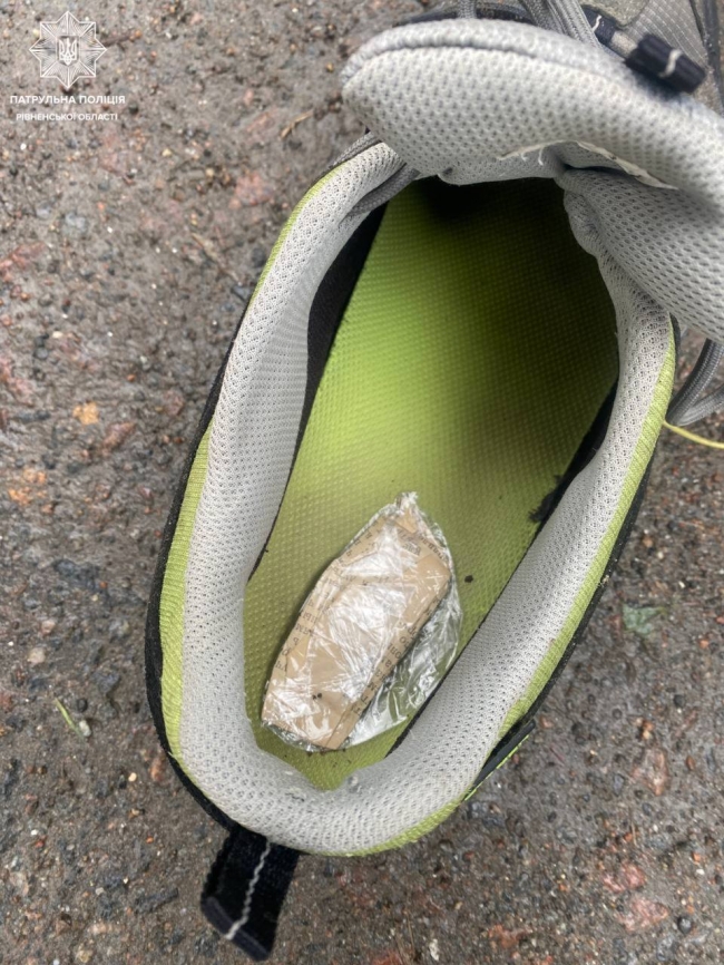 І не дарма. У кросівку громадянина поліцейські виявили згорток із речовиною рослинного походження – ймовірно, наркотичною, – розповіли в патрульній поліції Рівненщини.