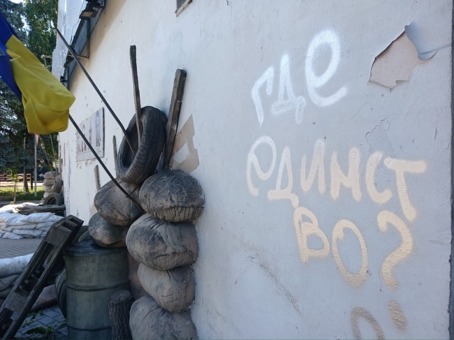 – «Герої не вмирають» написали на стіні пам’яті Небесної сотні. Спорудили, написали і забули. То чи варто було створювати цю інсталяцію, яка нині така занедбана?! Та ще й напис чужинський сріблом додався.