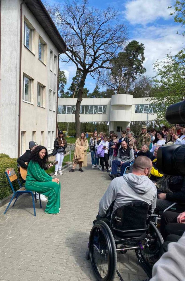 Співачка висадила сакуру, спілкувалась та фотографувалась з військовиками, щоб підняти їх бойовий дух. І ,звісно, заспівала їм декілька пісень.